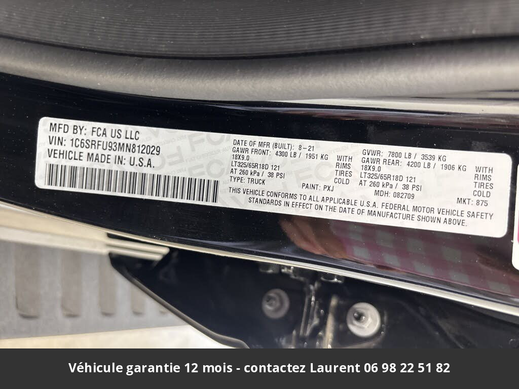 2021 Dodge RAM TRX Crew Cab 4x4 Tout compris hors homologation 4500e