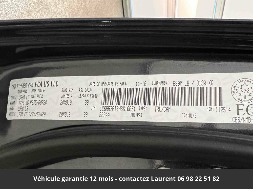 2017 DODGE RAM Limited Crew Cab 4RM 2017 Prix tout compris hors homologation 4500 €