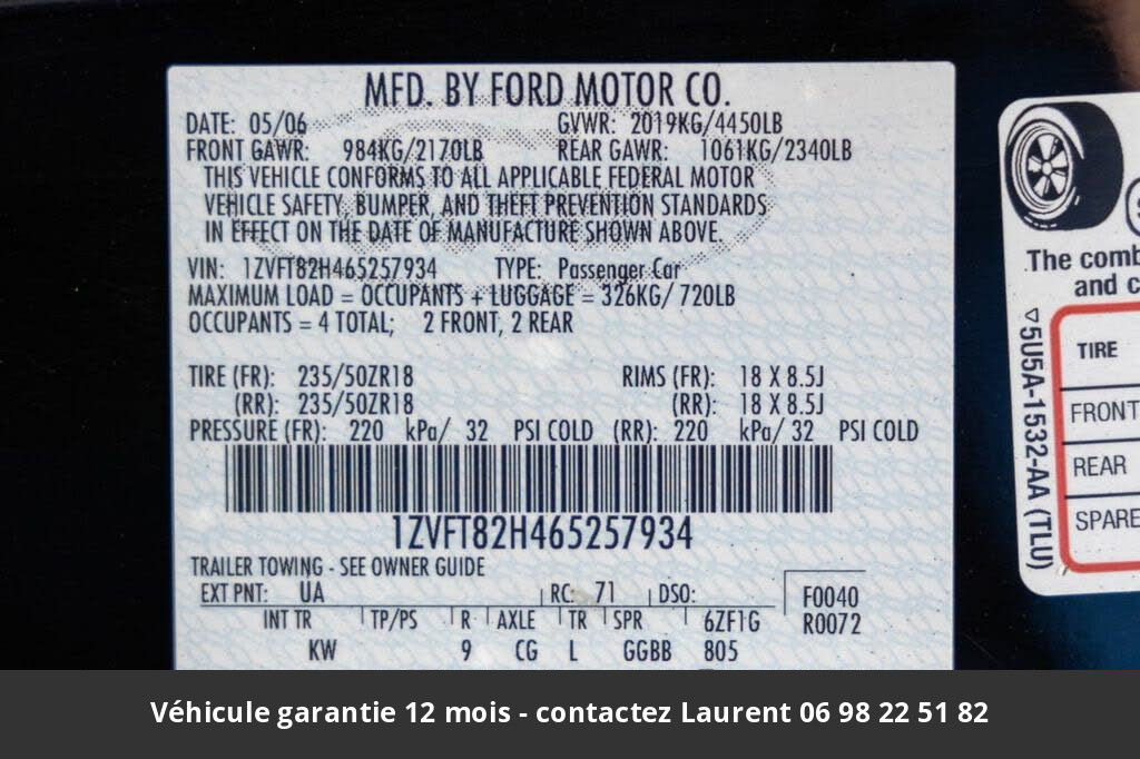 2006 ford mustang 300 hp 4.6L V8 GT 2006 Prix tout compris hors homologation 4500 €