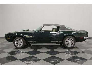 Alors que de nombreux moteurs commençaient à perdre de la puissance au début des années 70, les ingénieurs de Pontiac étaient mieux placés que quiconque pour maintenir leurs moteurs au sommet des classements de puissance, et le V8 de 350 pouces cubes de cette Firebird est certainement un bon coureur aussi. Grâce à un entretien approprié et à des modifications minimes, il fonctionne parfaitement, il est donc prêt à être utilisé sans souci. Il porte de la peinture Pontiac Turquoise, des couvercles de soupape à ailettes et un filtre à 4 barils sous un filtre à air Holley compact. Les collecteurs de style Stock alimentent un nouveau système d'échappement double qui ajoute probablement quelques chevaux et fournit un faible grondement que les voisins peuvent entendre. Le châssis est en excellent état, avec des sols solides qui mettent en valeur les années passées au sec et un ensemble d'engrenages raisonnables à l'arrière en font un bateau de croisière sans effort. La conduite est considérablement améliorée grâce à la direction assistée et les freins à disque avant arrêtent tout le spectacle. Les roues sont à cinq rayons chromés avec capuchons centraux Pontiac, enveloppées dans des radiaux à parois noires 225/50/17 (avant) et 255/45/18 (arrière) aux quatre coins.